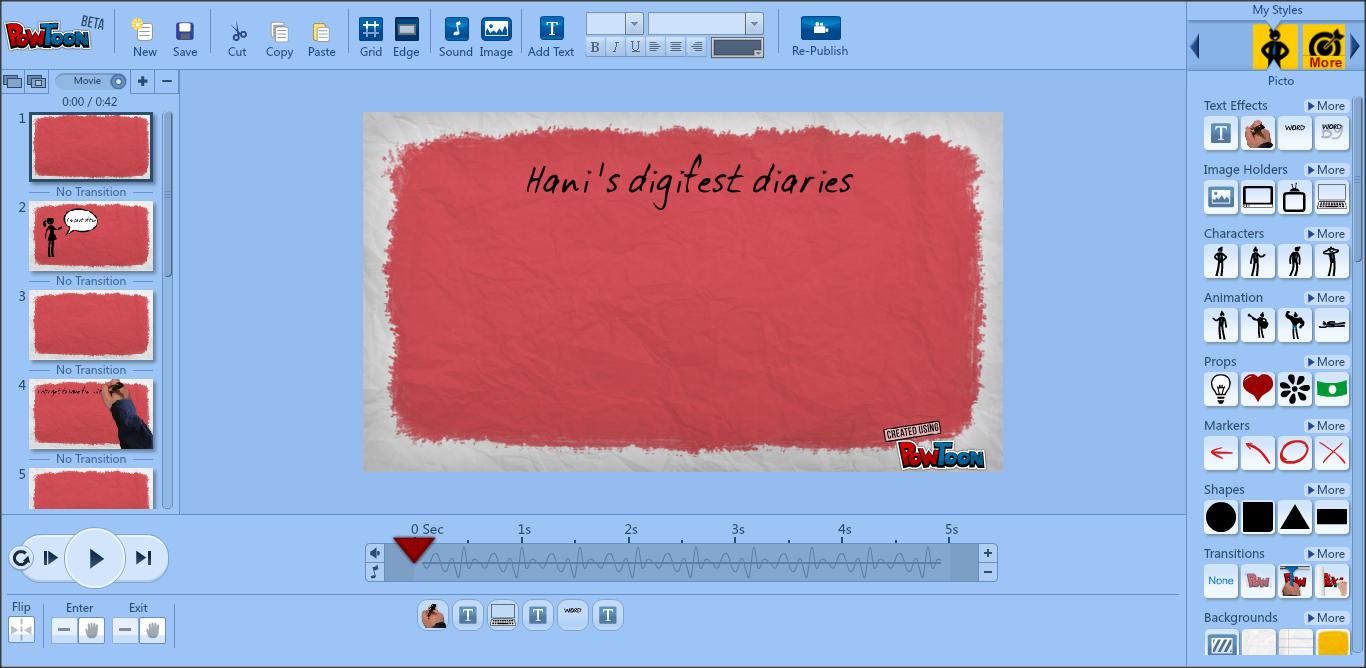Basically Powtoon works like the usual presentation softwares, only with more flexibility in slide length, presentation and animation styles and with cool icons to boot!